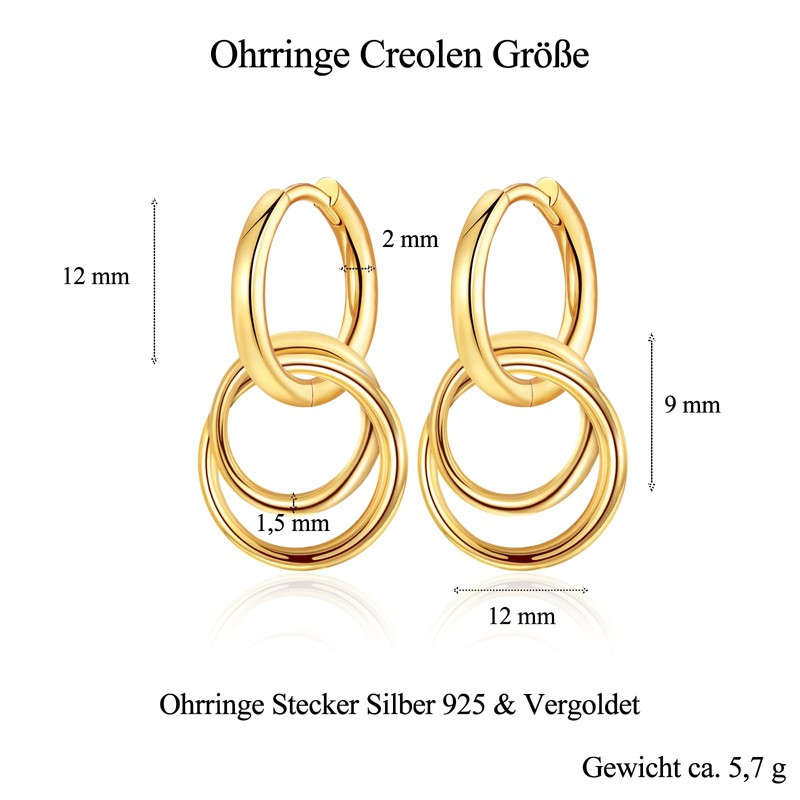 - Material: earrings studs silver 925, hoop earrings gold-plated.