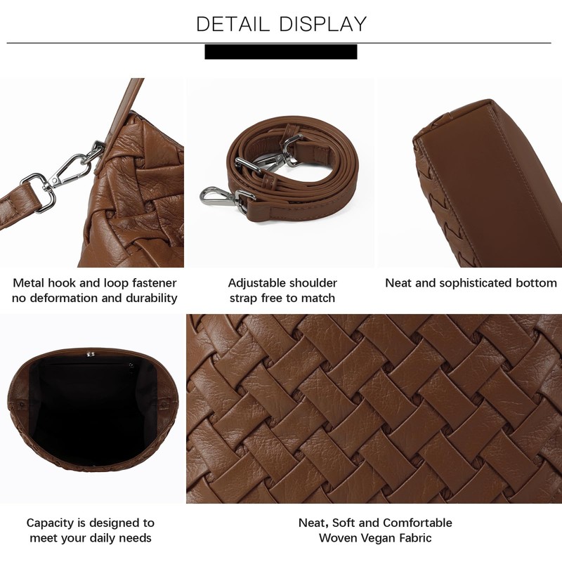 • 【Women's Woven Beach Bag】PU woven material is a man-made synthetic material. This texture is made of cross-woven leather. The bag has excellent texture, soft and comfortable feel, and strong color fastness. The weaving process increases the three-dimensional sense and layering of the bag. The sturdy and fixed handle is also equipped with a long shoulder strap for easy carrying. It can be carried by hand or cross-body, which is very convenient and flexible.