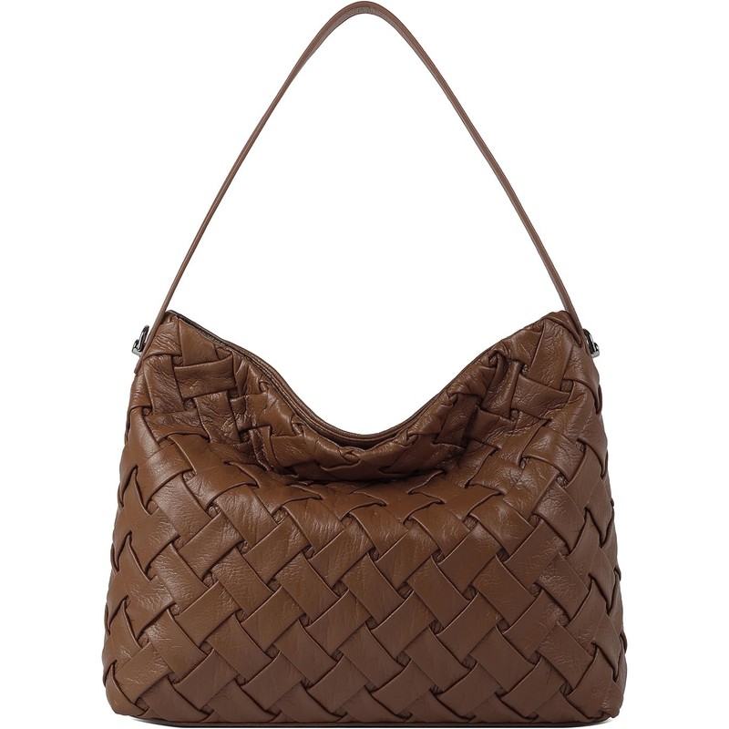 Woven Bag for Women, Vegan Leather Tote Bag Handmade Large Summer Beach Shoulder Bags, Brown, Medium