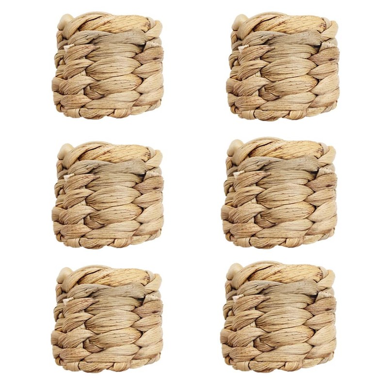 Woven Napkin Rings Set of 6, Hand-Woven Hyacinth Napkins Holder Handmade Braided Natural Napkin Rings, Napkin Rings for Birthday Party, Wedding, Christmas, Thanksgiving Decorations