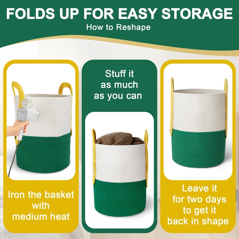 - This large laundry basket could be folded up for easy storage and space-saving when not in use.