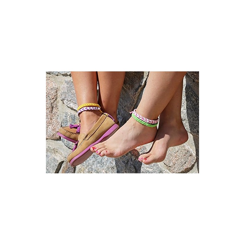 This anklet is fully adjustable and should fit most ankles, opening up to about 12 inches and is a dainty 1/4 inch wide. Made out of braided cotton cord with the ends whipped in a narrower cotton cord. Available in 10 Nautical color choices - red, blue, tan, navy, gray, brown, green, white, black, yellow