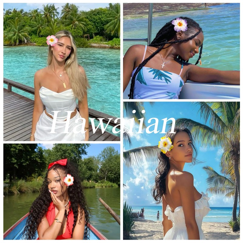 - Hawaiian Flowers for Hair - Our hawaiian hair clip are perfect for summer, for all occasions, such as luau parties, beach accessories for women, vacation trips, pools, cruises, music festivals, photo shoots, and more.