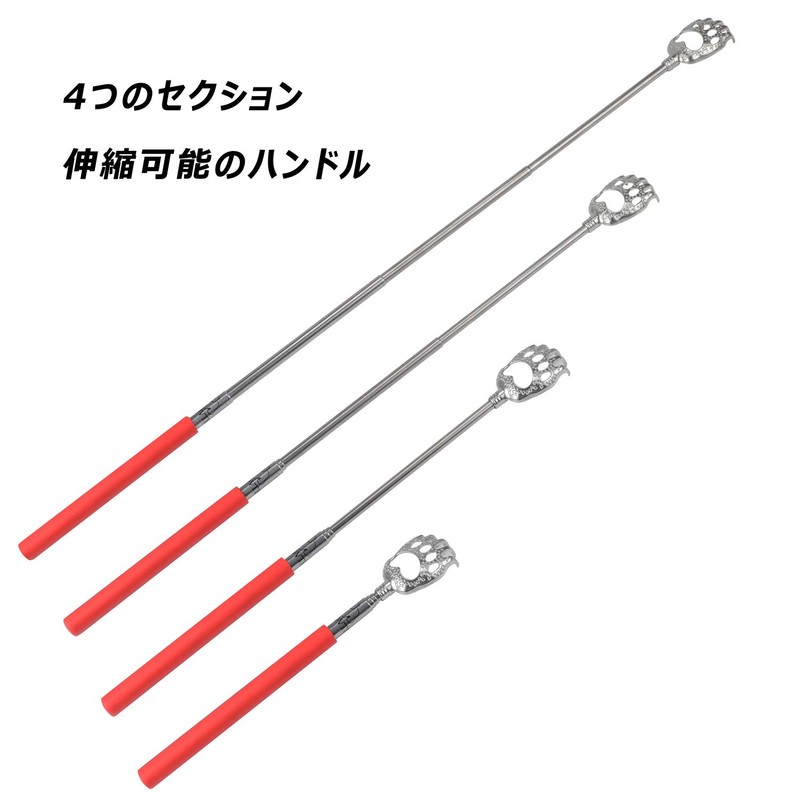WOVTE Grandson Hand, Elastic, Portable, Extendable Grandson Hand, Stainless Steel, Reaches Itchy Areas, Stretchable, Approx. 22.8 inches (58 cm), Red