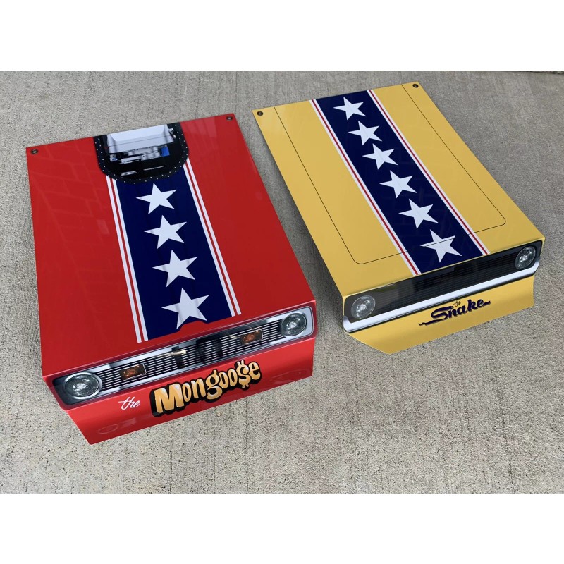 Up for sale is beautiful set of Hi gloss wall pieces featuring Snake and Mongoose DRAG RACING famous race cars hood style sign, size 17x12 inch each with punched holes for easy mounting.
