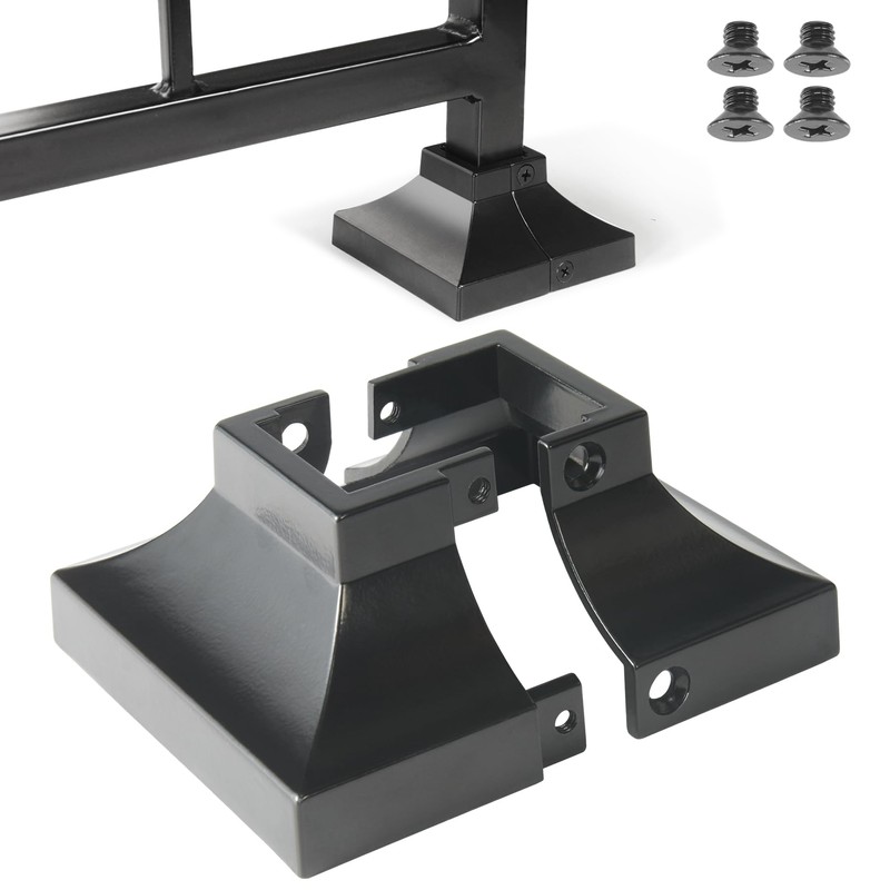 - EXCELLENT DESIGN: Deck post covers features a split design that can easily update your post footing without welding or remoulding, Covering exposed post anchors and post construction defects, Giving your railings, Entry iron handrails a neat, Attractive look