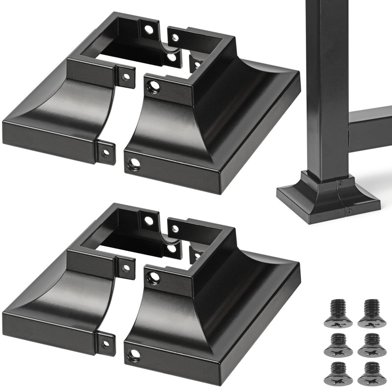 - EXCELLENT DESIGN: Deck post covers features a split design that can easily update your post footing without welding or remoulding, Covering exposed post anchors and post construction defects, Giving your railings, Entry iron handrails a neat, Attractive look.