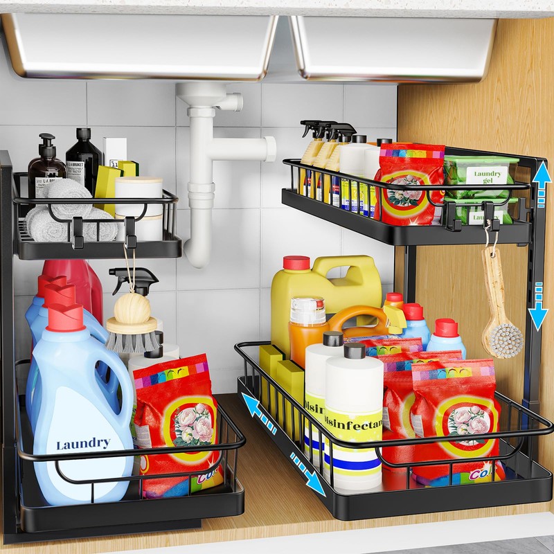 WOWBOX 2 Pack Under Sink Organizer 2 Tier Slide Out Cabinet Organizer Under Sink Organizers and Storage for Kitchen Bathroom Pantry