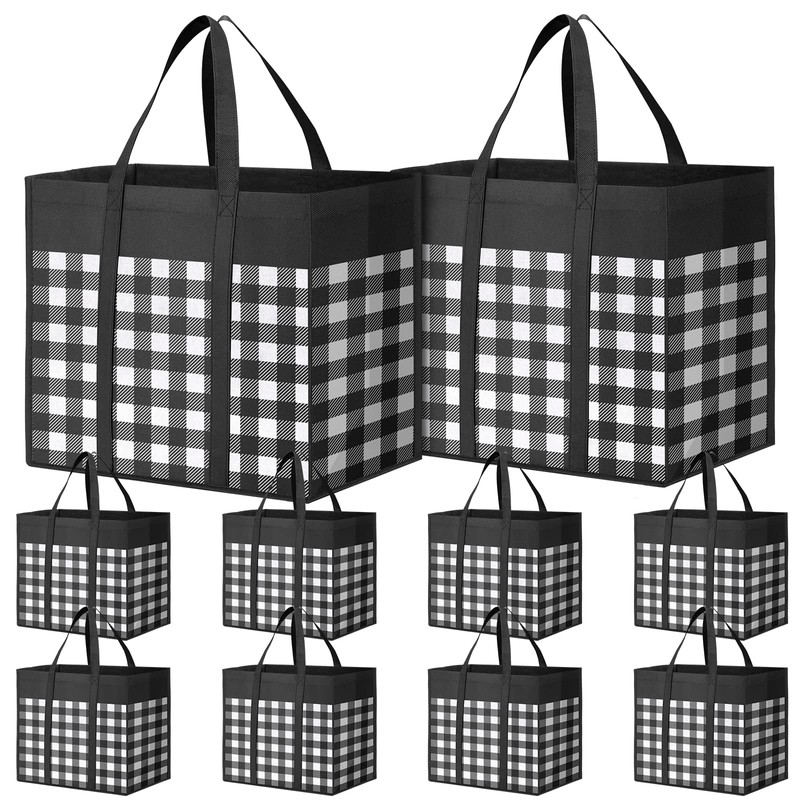 WOWBOX Reusable Grocery Bags 35L,Black-10 Pack