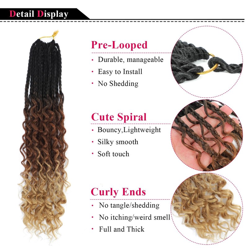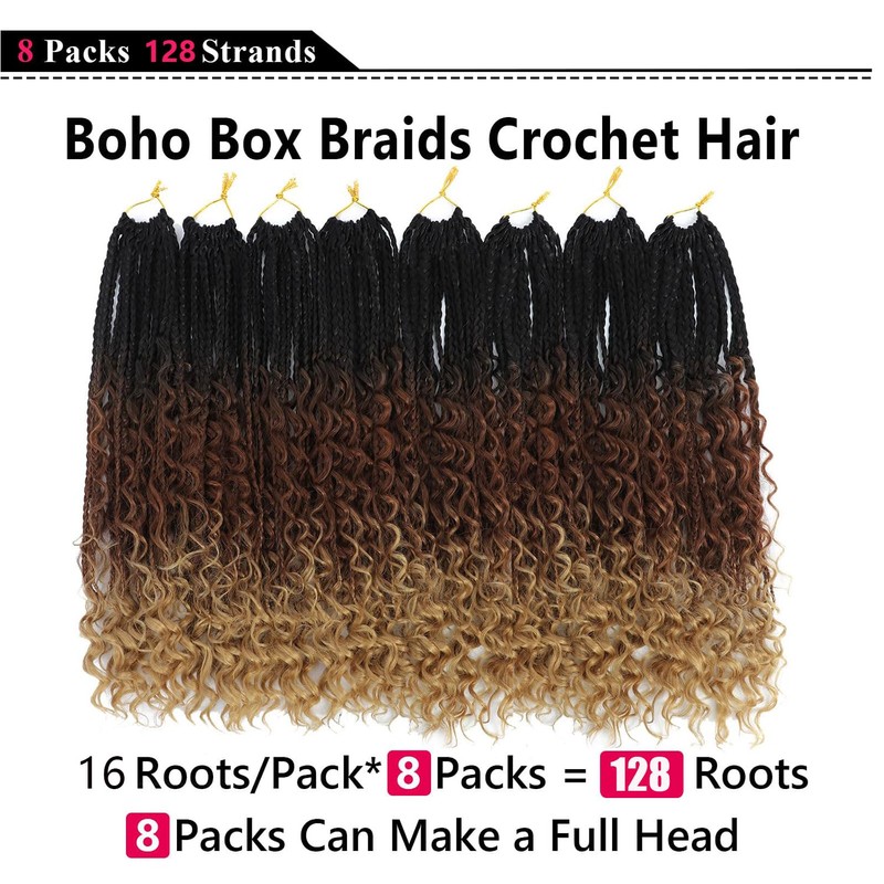 - Our Brand :Boho Goddess Box Braid Crochet Hair are 100% Handmade Crochet Braids, pre-looped and High Quality Fiber.Crochet Box Braids with curly ends Made with high quality flame-retardant low temperature synthetic fiber.