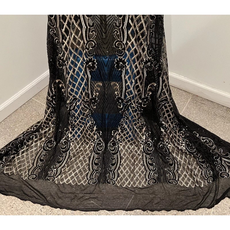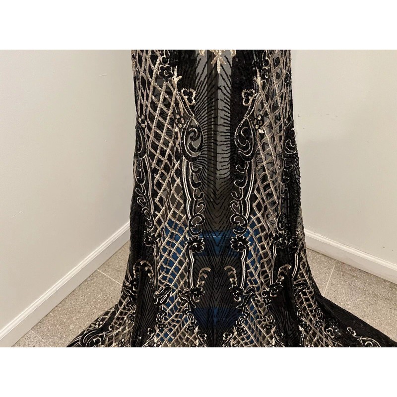 wowfabric4less123 Black Gold Embroidery 4way stretch sequin Lace fabric 50” Width 1 Yard