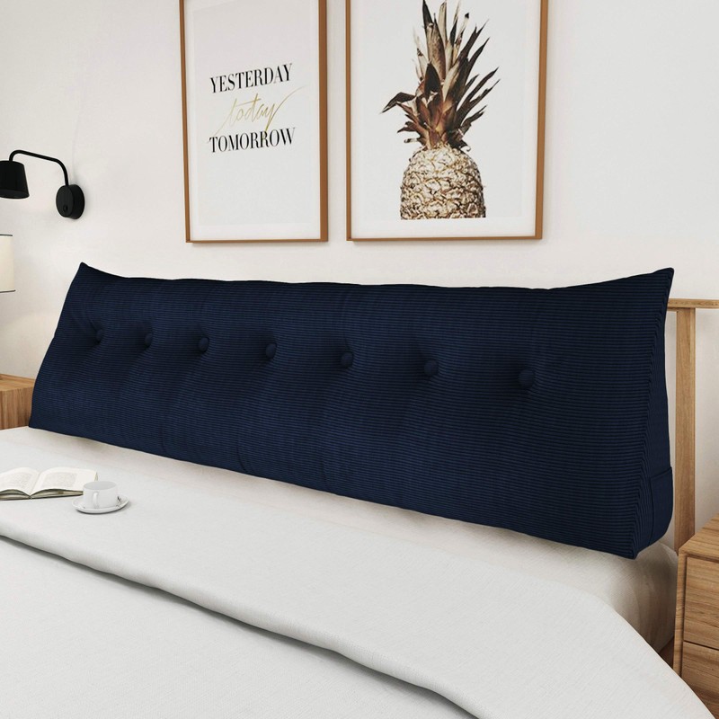 WOWMAX 100% Cotton Triangular Pillow Covers Cases for Our Reading Pillows Large Bolster Headboard Backrest Wedge Pillow Deep Blue Queen Cover