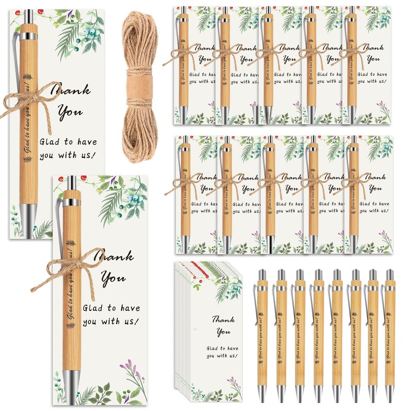 WowMoment Employee Appreciation Gifts, 40 Set Ballpoint Pens with Thank You Bookmark Cards, Back to School Gifts for Teacher Student, Appreciation Gifts for Coworkers Wood Bamboo Pen Party Supplies