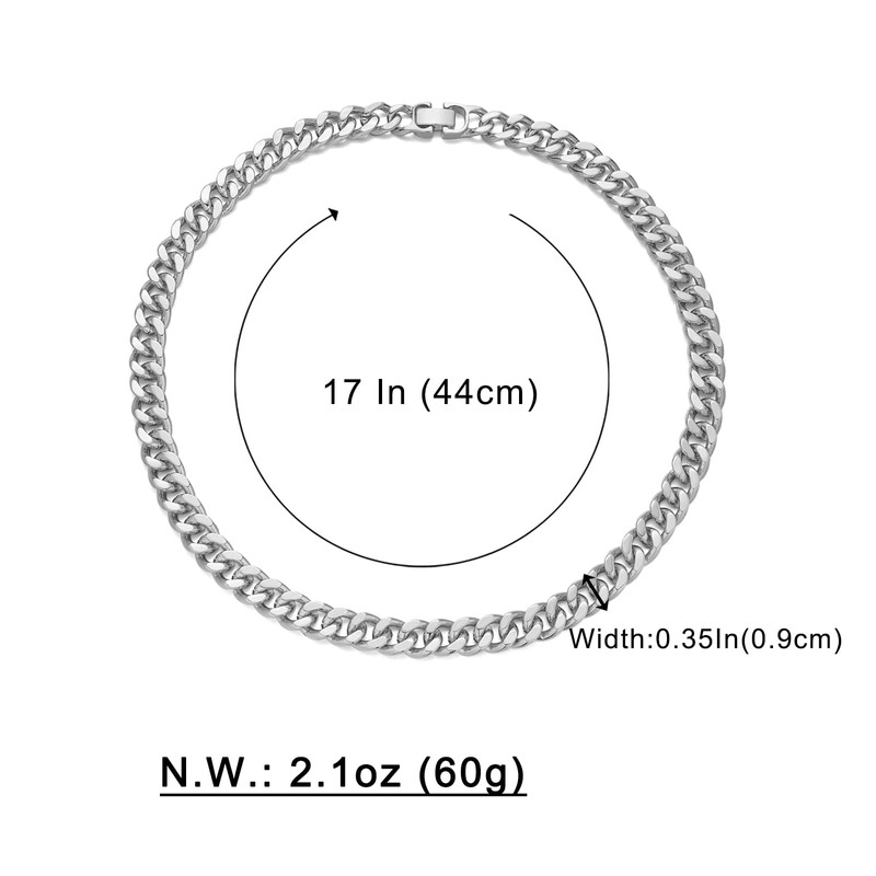 With a 9mm width and 17-inch length, this unisex silver chunky chain necklace is designed to be comfortable and versatile. It is suitable for both women and men, making it a perfect choice for couples who want matching accessories or for those who want to make a fashion statement.