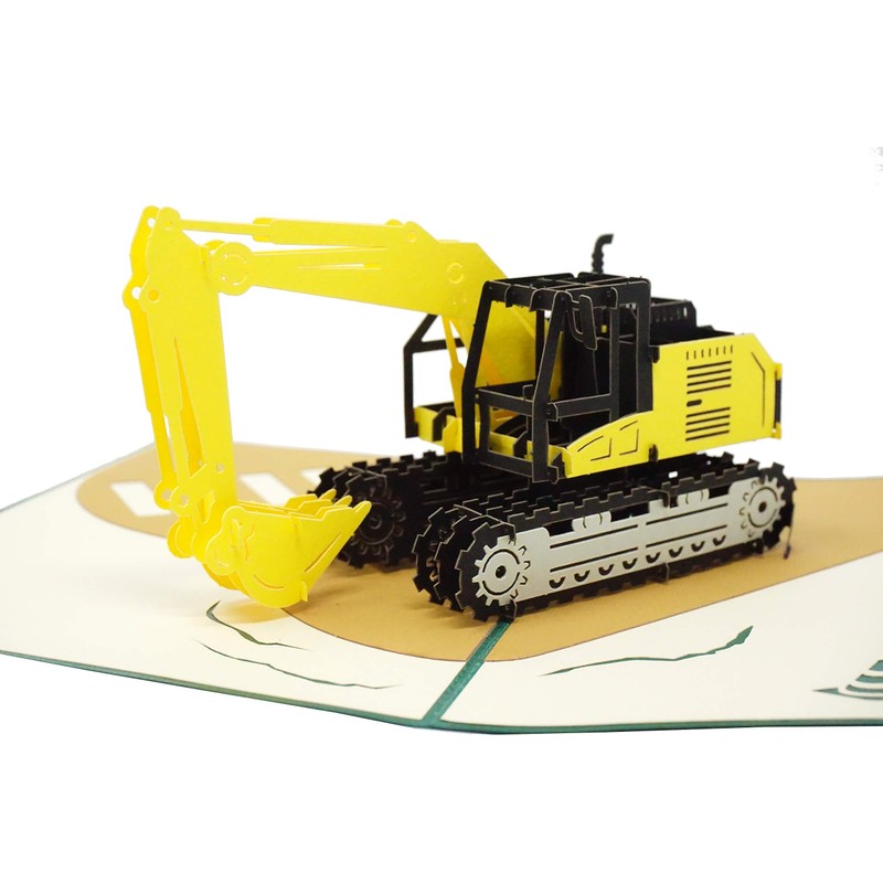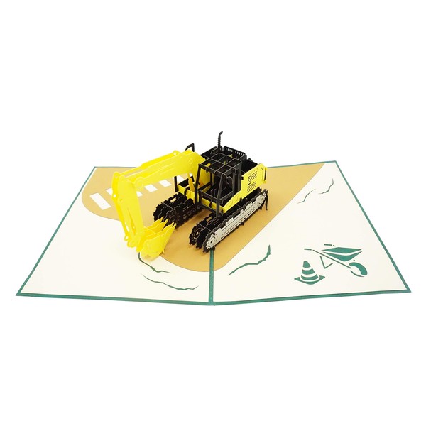 - ✔️ IMPRESSIVE DESIGN - The green cover has a nice laser cut of a Excavator. Opening the main page, an amazing Excavator will pop out