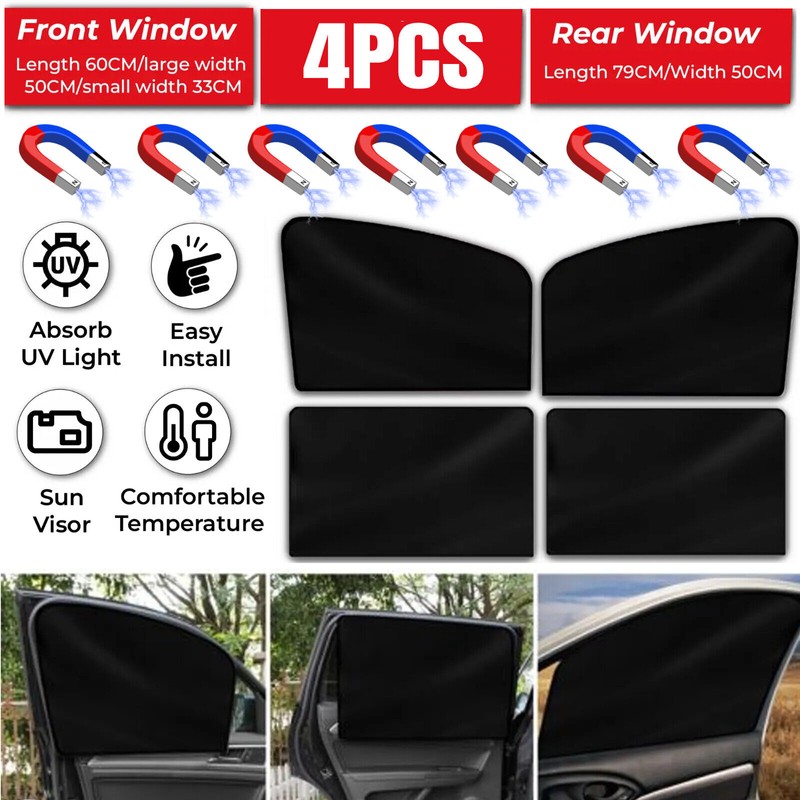 Wowpartspro 4Pcs Magnetic Car Side Window Screen Sun Shade Cover Shield Visor UV Protection