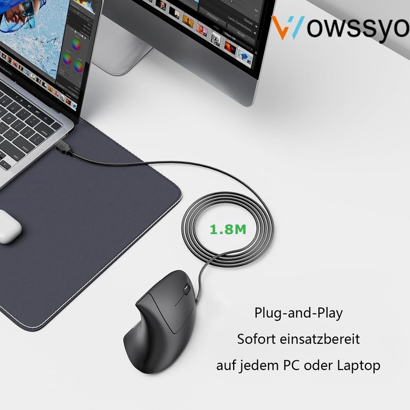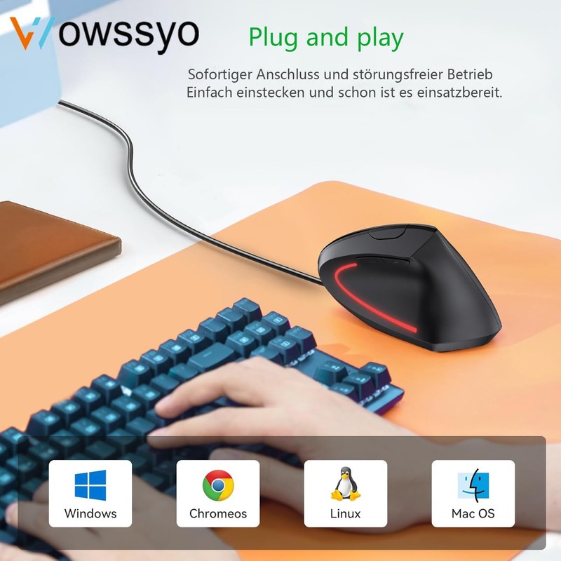 - Product includes: Wowssyo ergonomic mouse, 1 x 4-in-1 hub gift, user manual (English language not guaranteed).