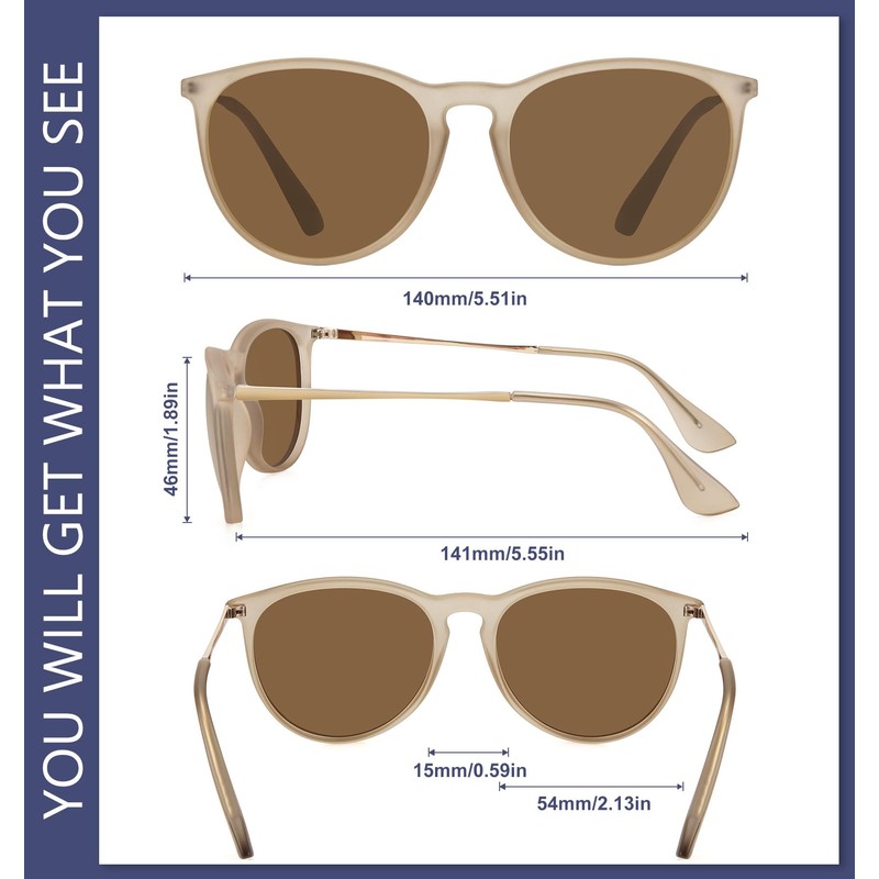 - DIMENSIONS -- Lens height: 46mm (1.89inches); lens width: 54mm (2.13inches); temple length: 141mm (5.55inches); nose bridge:15mm (0.59inches); frame length: 140mm(5.51inches). Microfiber Pouch, Cleaning Cloth is Included.