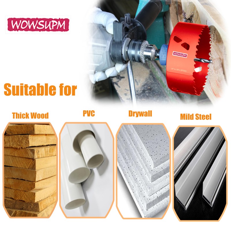 - Application: Ideal for Wood, Plasterboard, PVC, MDF, Drywall, Aluminum. Can cuts thin metal. Not only for wood. It's Real bi-metal hole saw.