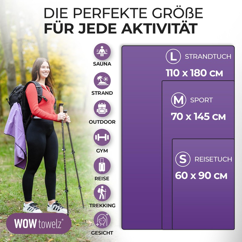 Wowtowelz Compact Microfibre Towel, Travel Towel, Sports / Fitness Towel, Beach / Bath Towel, Lightweight and Quick Drying (Purple, 180 x 110 cm)