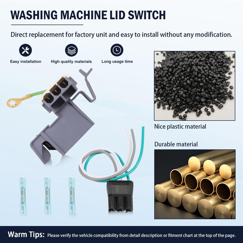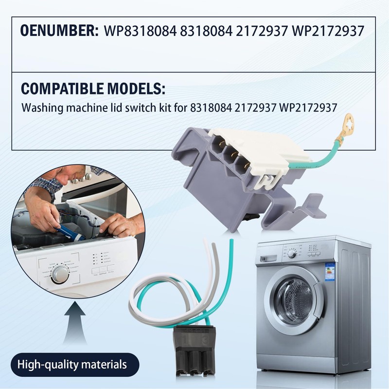 - Package Included:1* 8318084 Washer Lid Switch+1* WP2172937 Switch connector harness + 3* terminals