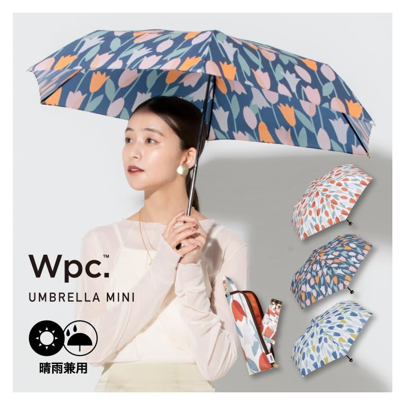 Wpc. 3590-113-002 Rain Umbrella, Blooming Tulip, Mini, Blue, Folding Umbrella, Ribs, 19.7 inches (50 cm), Unisex, Hand Opening, Retro, Floral, Scandinavia, Soft Color, Photogenic, Cute, Comes with