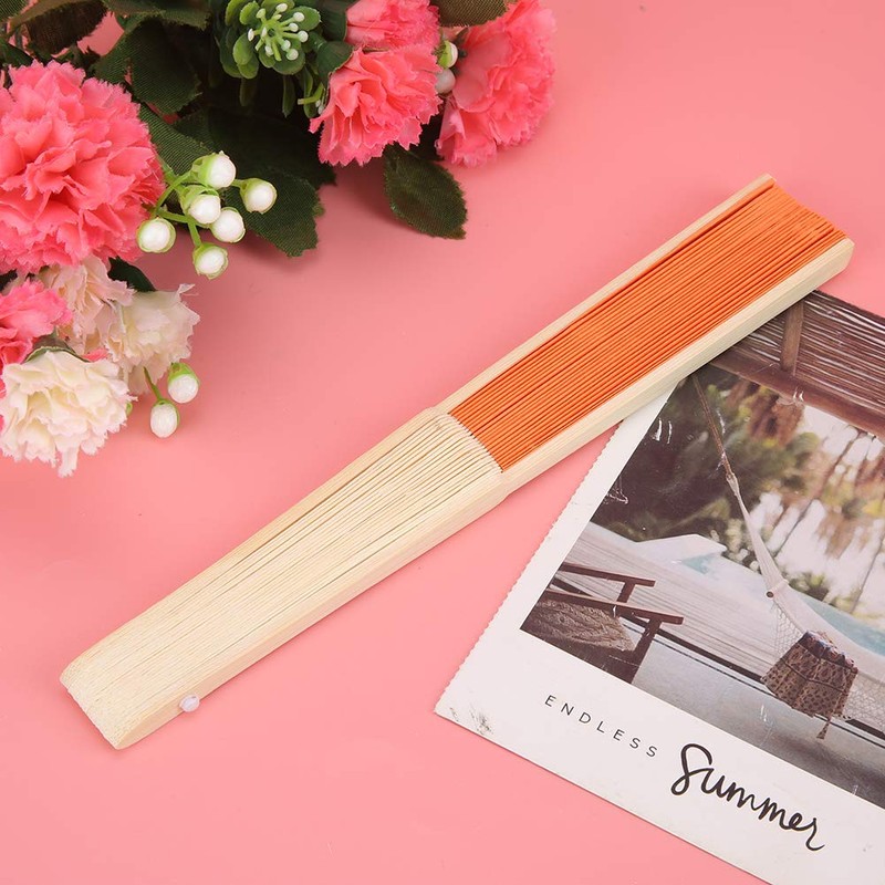 WPKD BLUEIY Pack of 5 Folding Fans, DIY, Pure Colour, Wood, Paper, Hand Fan, Foldable, Summer Hot Day, Foldable, Wedding, Photo, Party, Prop, Wall Decoration (Orange)