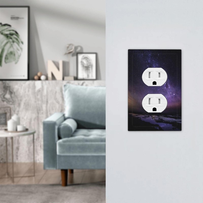 Wpshijia Outlet Covers Purple Starry Sky Nightscape Wilderness 1 Gang Duplex Light Switch Cover Plate Decorative Wall Plates Electrical Switchplate Receptacle Cover for Bathroom Home Decor
