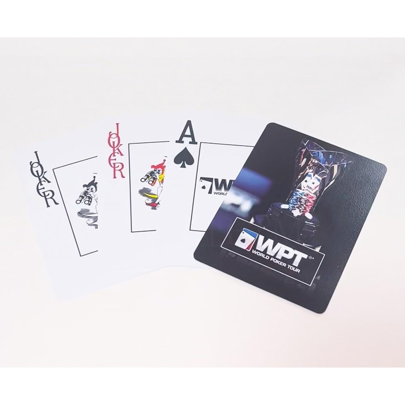 - WPT Playing Cards, Red, Blue Set, 100% Plastic Playing Cards, Waterproof, Poker Size (2.5 x 3.5 inches (63 x 88 mm), Jumbo Index, 54 (2 Jokers), Cut Card Included, Soft and easy to shuffle and handle. In addition, cards are smooth and difficult to stick together