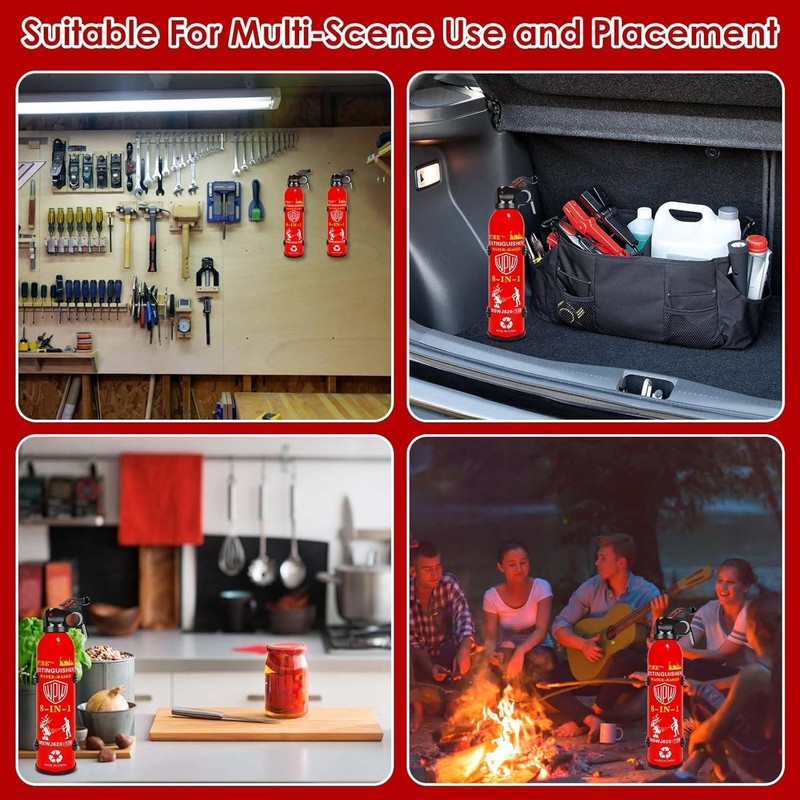 - [Convenient and easy to use]: Fire extinguisher for home maximum spray distance 13 feet.This portable fire extinguisher spray was developed specifically to stop fires as well as re-ignition without leaving any residue or making a mess. After a fire incident, simply wipe down the scene and clean it up