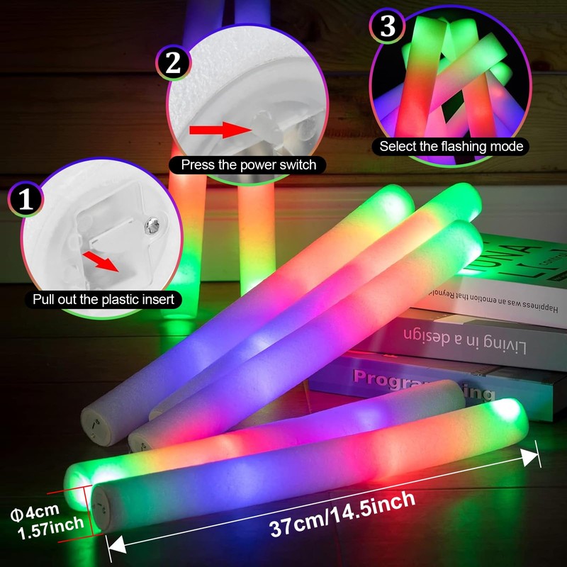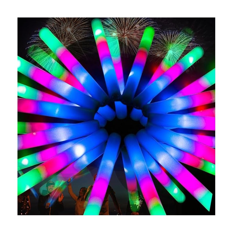 WQAPVHBG 32 Pcs Foam Glow Sticks Bulk,Glow Foam Sticks with 3 Modes Colorful Flashing, Glow in the Dark Party, Light Up Sticks For Wedding,Raves,Concert,Camping,New Year Carnival(32 PCS)