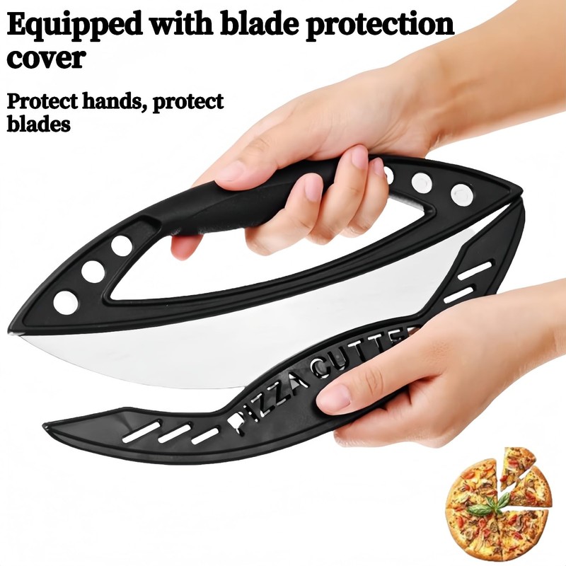 • 2-in-1 design: Pizza cutter rocker is with a protective sheath,Ensure safety in daily used,After use, simply put on the protective cover