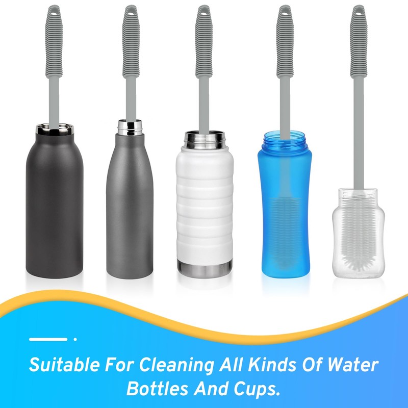 - THOROUGH CLEANING: The soft and dense bristles of the water bottle brush thoroughly clean residue from the inside and bottom of bottles.The bristles of the silicone straw cleaner brush have good elasticity and can flexibly adapt to various shapes and curves.