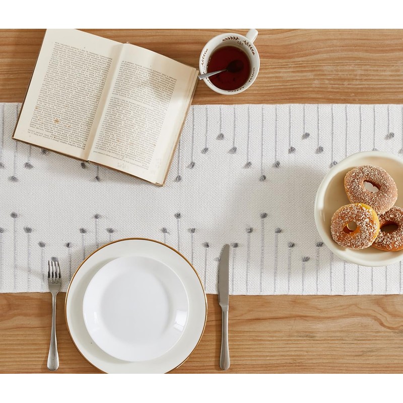 Wracra Boho Table Runner, Natural Cotton Woven Macrame Table Runners 108 Inches Long for Modern Farmhouse Woven Home Decor, 14x108 Inch, Grey