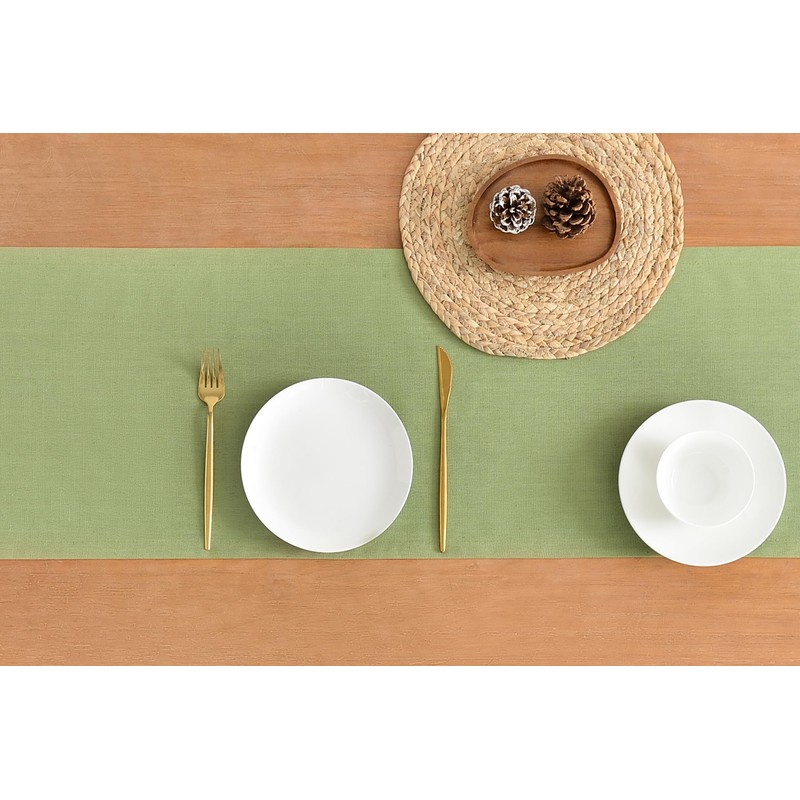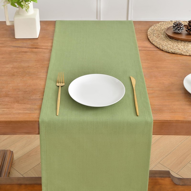 Wracra Sage Green Linen Table Runner, 150 cm Long, Machine Washable, Rustic F...