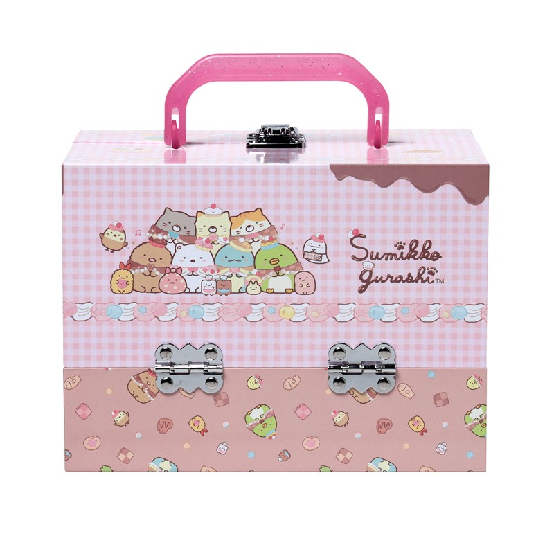 - Introducing a new design from the popular Sumikko Gurashi Vanity Makeup Box. This time Sumikko surrounded by delicious sweets are very cute. This authentic cosmetic set includes a heart-shaped eye shadow palette of 3 colors, nail color, lip gloss, lipstick, and hair tissues that are sure to make your face even for adults. In addition, this time you will receive a cute patches and comb that sparkles with heart sequins. Nail is water-soluble and can be easily removed with water