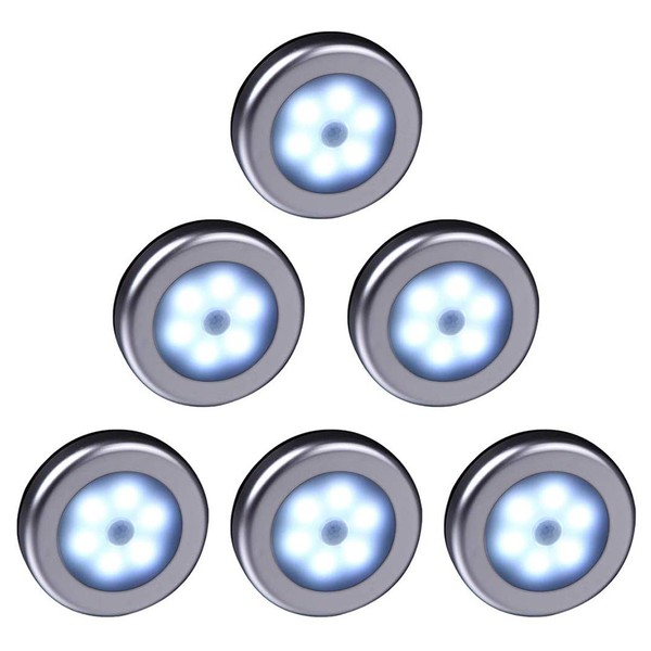 WRalwaysLX Wireless Motion Sensor LED Cabinet Light Stick-Anywhere Nightlight for Stairs, Hallway, Closet, Kitchen, Bedroom(009 6pcs Cool Light- Silver Shell)