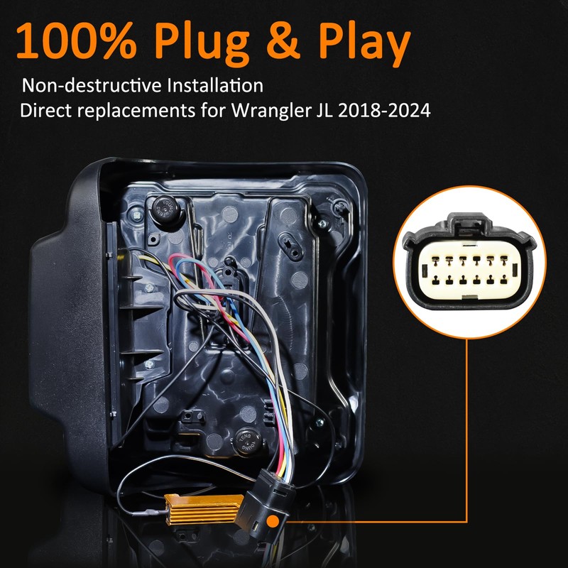 - 【FITMENT】: Compatible with Wrangler JL 2018 2019 2020 2021 2022 2023 2024, without additional drilling. (Only compatible with the wrangler JL of halogen tail lamp in stock, not applicable to JK, excluding blind spot sensor)