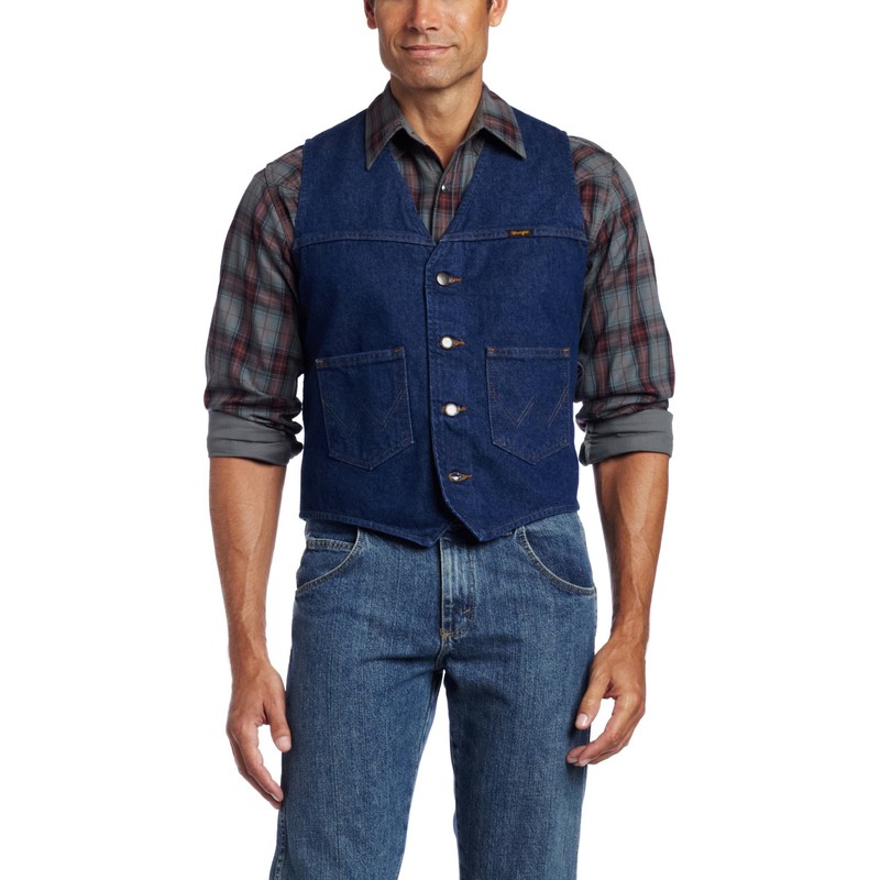 Wrangler Mens Unlined Denim Outerwear Vests, Denim, X-Large US