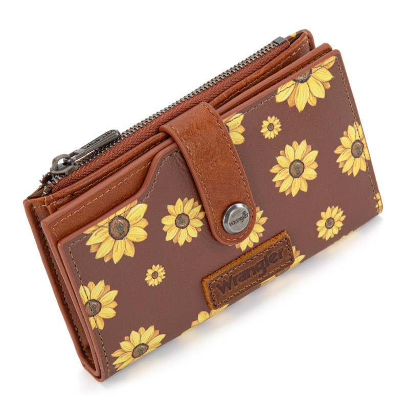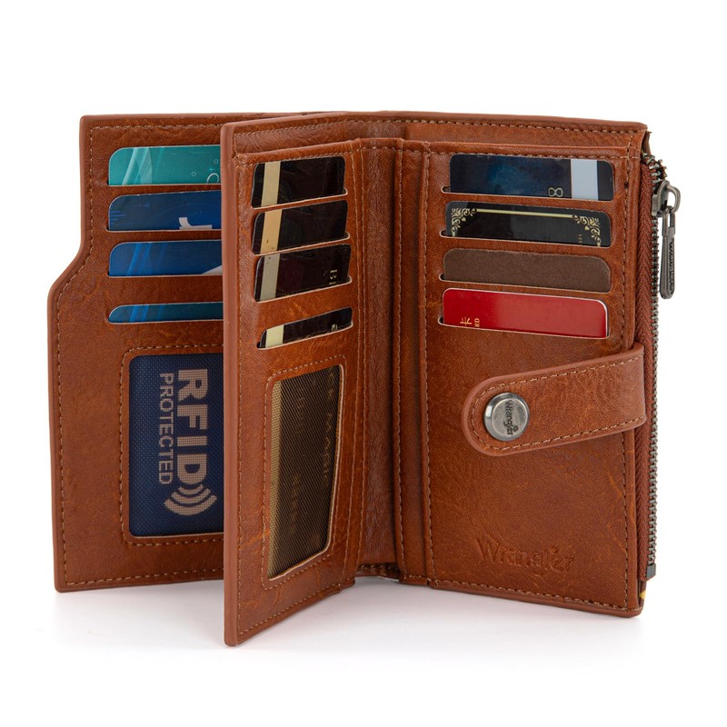 Wrangler Wallet for Women Bifold Card Holder with Zipper Pocket Ladies Clutch Purse with ID Window WG204-W0021BR