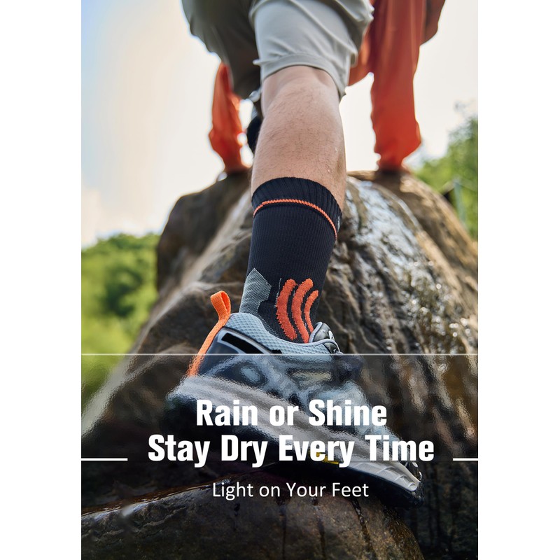 - Built for Outdoor Adventures – Hiking, Fishing, Running & More Designed for the rugged outdoors, these waterproof hiking socks are reinforced at the toes and heels for extra durability. Perfect for trail running, kayaking, whitewater rafting, or a wet day at a music festival. Say goodbye to cold, damp socks—hello to confidence in any weather.