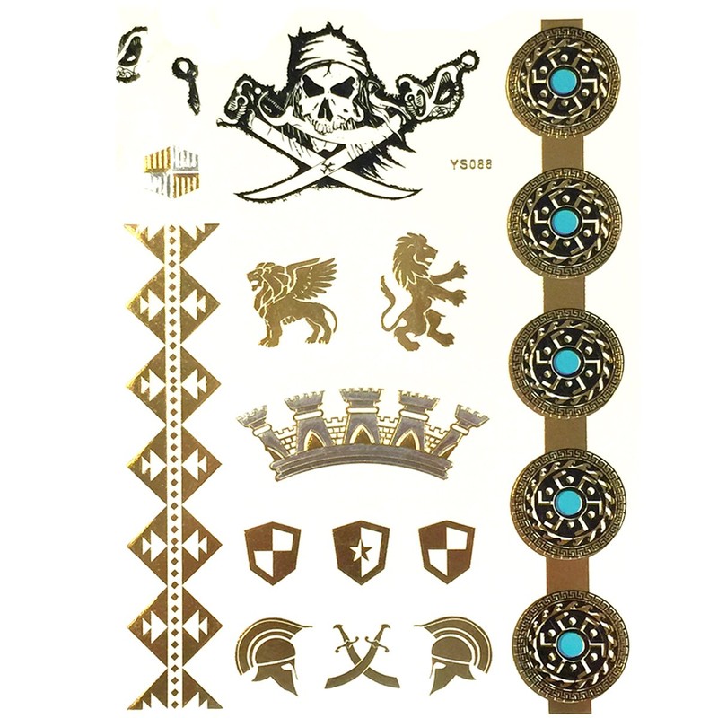 Wrapables Metallic Temporary Tattoo Stickers, Large, War Battle