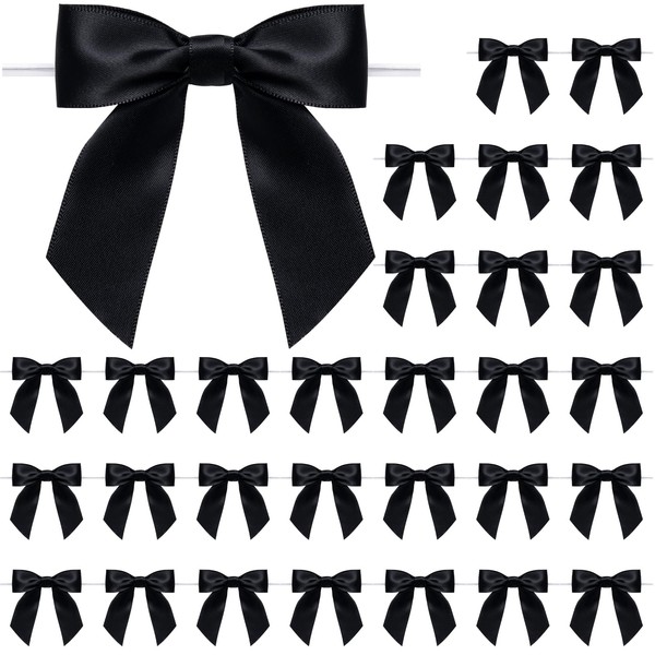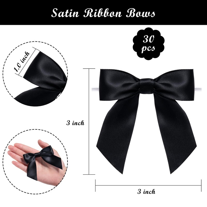 WRAPAHOLIC 30 Pcs 3" Black Satin Ribbon Bows with Twist Tie - Pretied Premade Craft Bows for Christmas Party Crafts Treat Bags Gift Wrapping Wedding Birthday Baby Shower