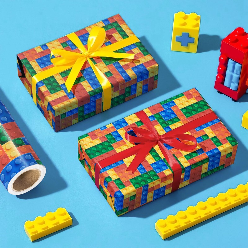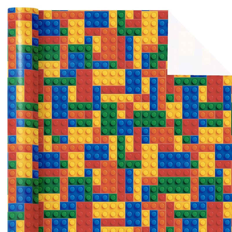 WRAPAHOLIC Bricks Wrapping Paper Roll - Mini Roll - 17 Inch x 16.5 Feet - Building Blocks Wrapping Paper Perfect for Boys Girls, Birthday, Baby Shower