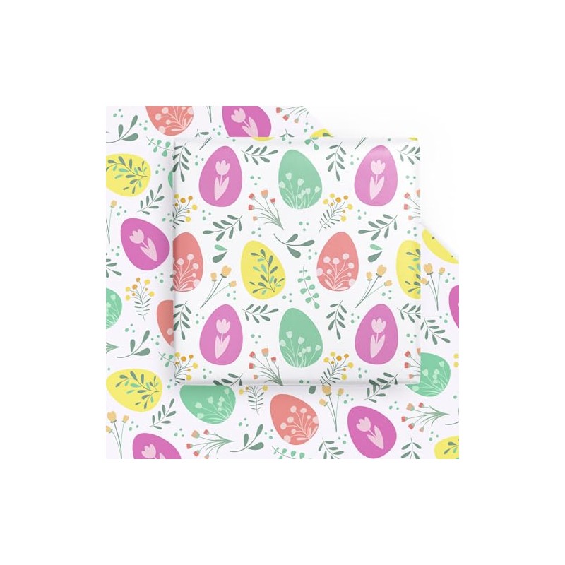 WRAPAHOLIC Easter Wrapping Paper Sheet - 5 Sheets Easter Egg and Spring Flowers Pattern Folded Flat for Easter, Spring and Party - 19.7 Inch x 27.5 Inch Per Sheet