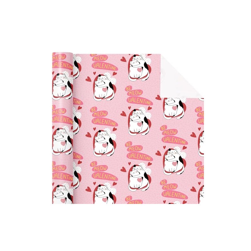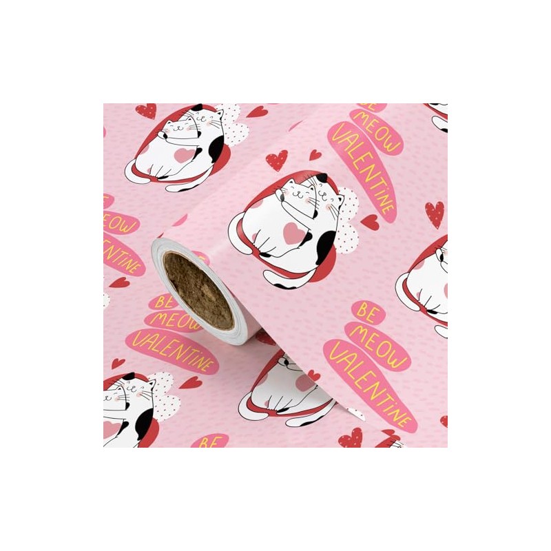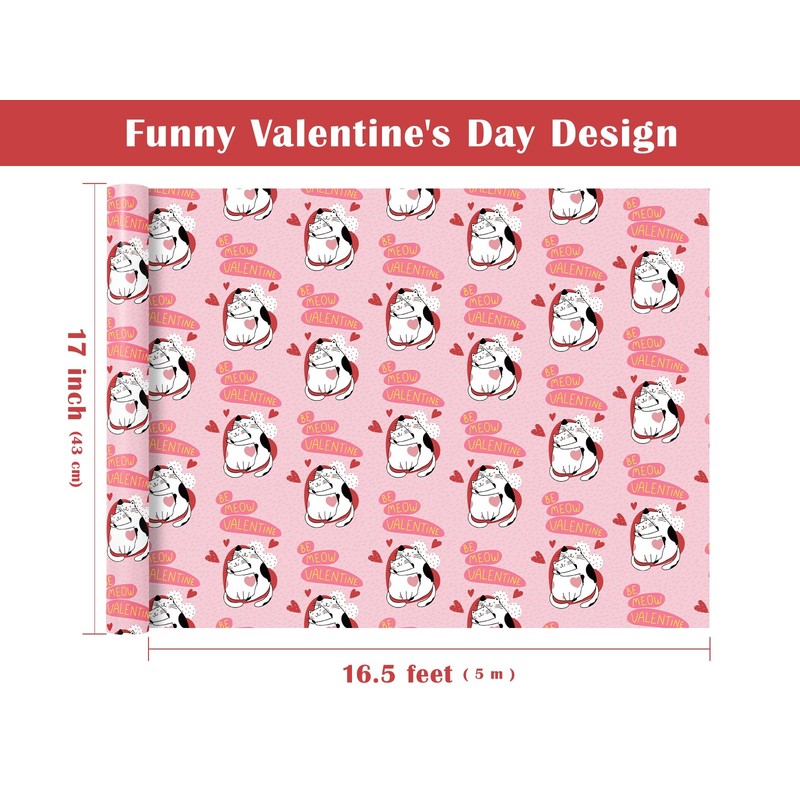 WRAPAHOLIC Funny Valentines Day Wrapping Paper Roll - Mini Roll - 17 Inch x 16.5 Feet - Adorable Cat Couple and Be Meow Valentine Design Perfect for Party, Celebration