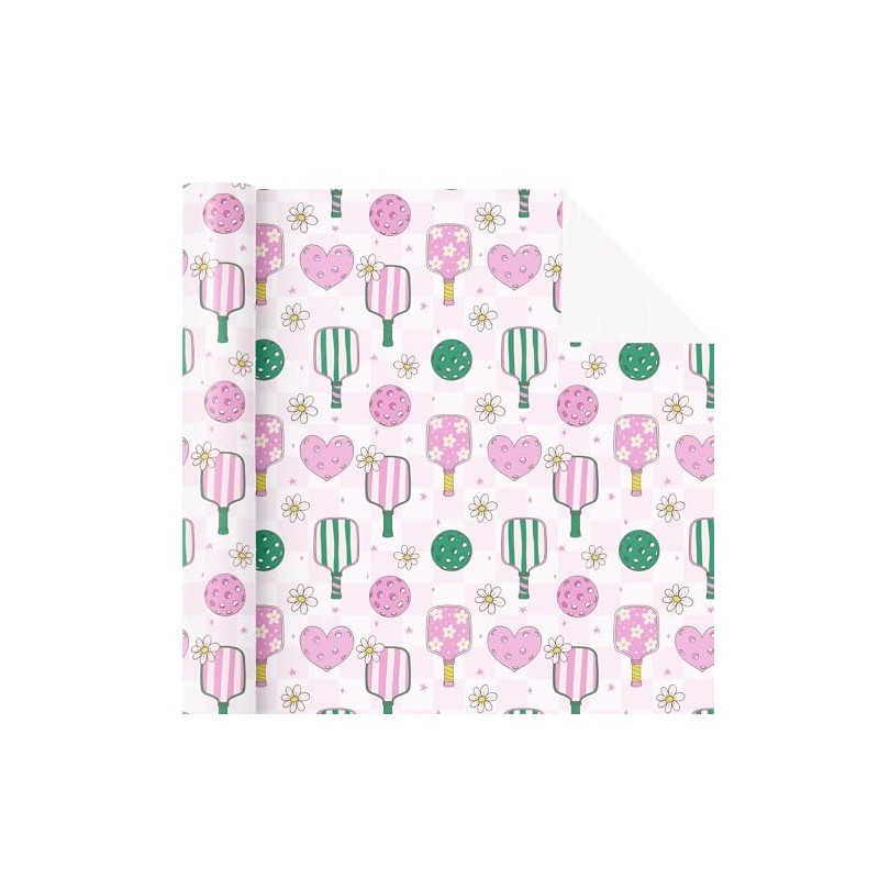 - Preppy Pink Pickleball Design: Pastel pickleball , paddles, flowers, and stars printed on pink plaids wrapping paper, create a sweet and playful feel. Vivid colors and interesting patterns will make your gift special and shiny.