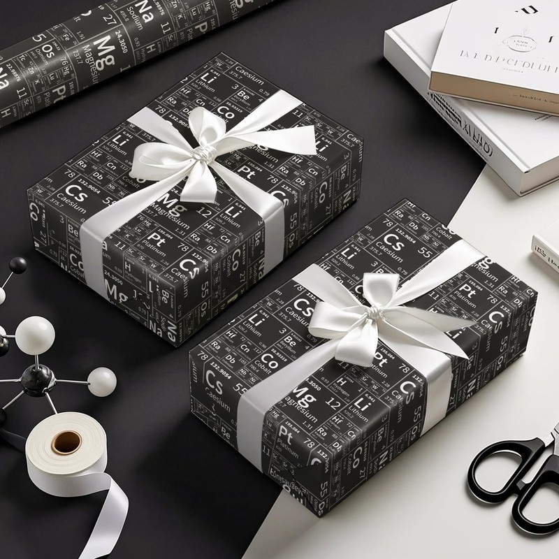 - Chemistry Design: Cool science wrapping paper, classic black and white chemical elements table design, combines science and style, interesting pattern will make your gift special and shining.