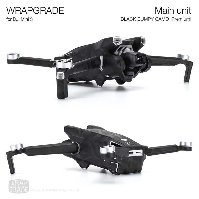 WRAPGRADE Skin Stickers Compatible with DJI Mini 3 | Main Unit (Black Bumpy CAMO)
