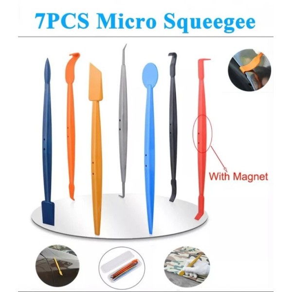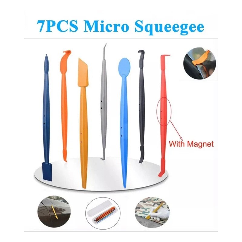 Wrapmaster 7pcs Car Vinyl Wrap Micro Squeegee Stick Tuck Tool Magnet Gasket Edge Scraper